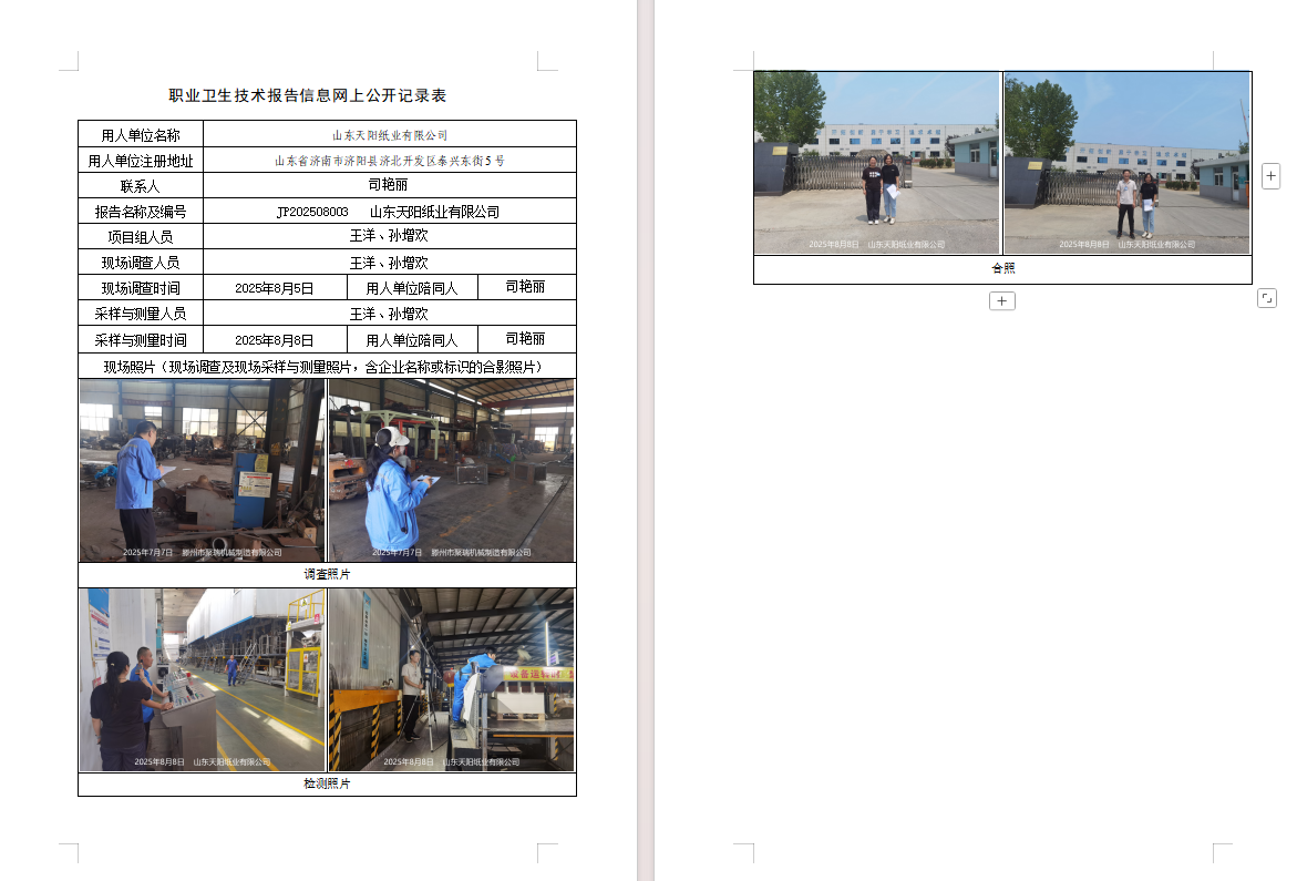 山東天陽紙業(yè)有限公司JP202508003